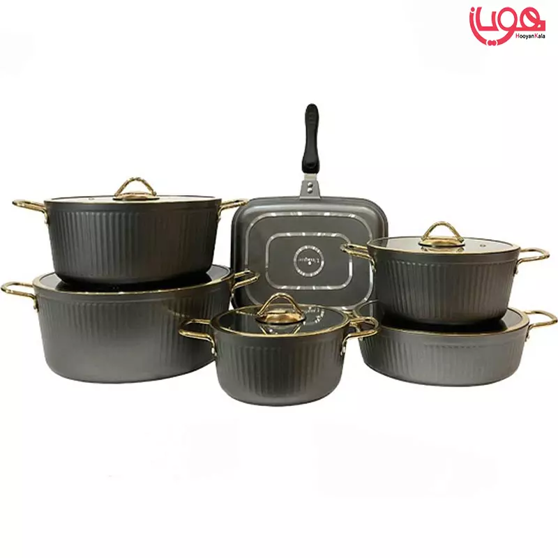 سرویس قابلمه پارس استیل 8 پارچه دسته طلایی