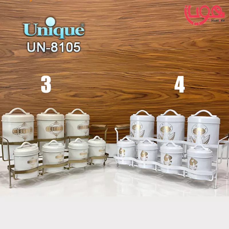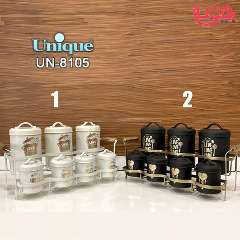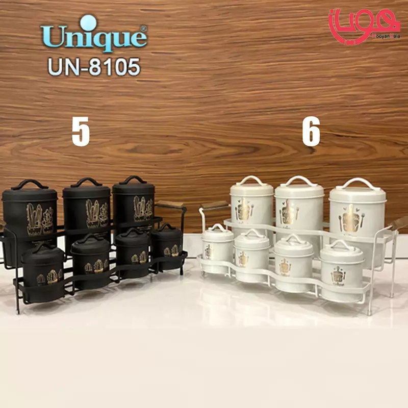 ست جا ادویه (پا سماوری) یونیک 7 عددی پایه دار درب فلزی UN-8105