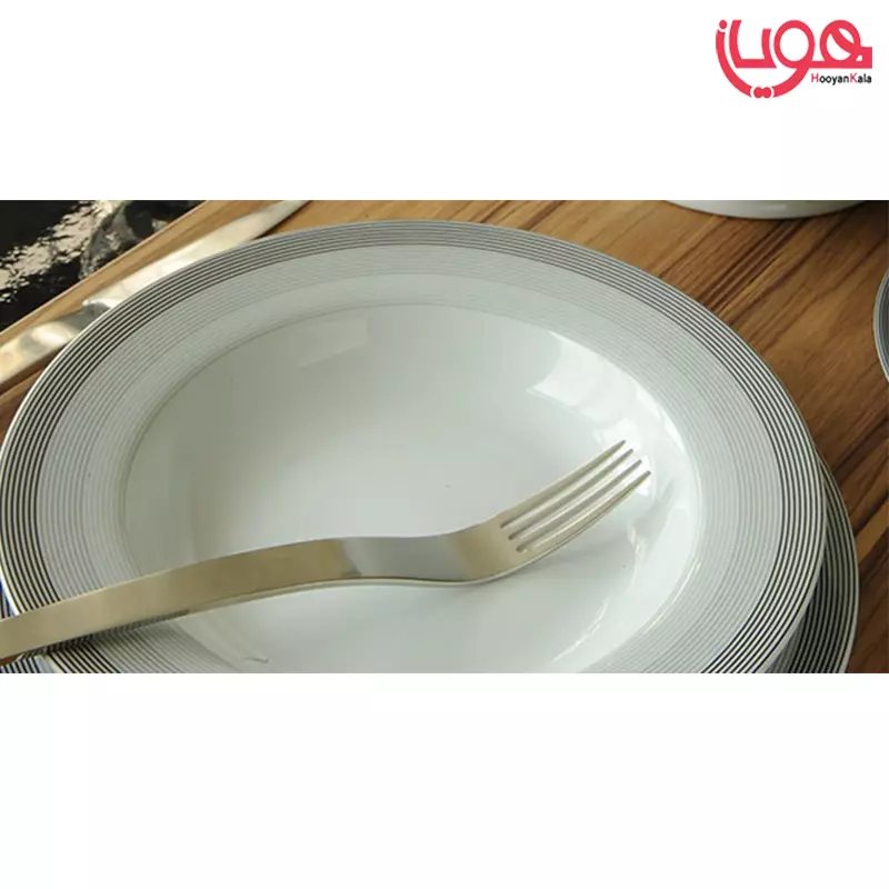 طرح سیلور لاینر با خطوط نقرهای براق و ظریف که دور تا دور لبه ظروف را تزیین کرده است، زیبایی و جلوهای خاص به این مجموعه میبخشد. این طراحی مینیمال و شیک، به راحتی با هر سبک دکوراسیون داخلی و چیدمان میز هماهنگ میشود.