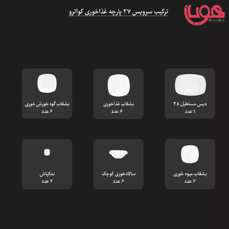 - بشقاب غذا خوری: شش عدد (29 سانتی متر)