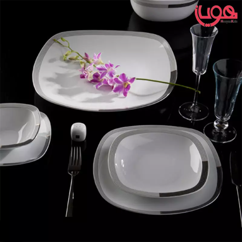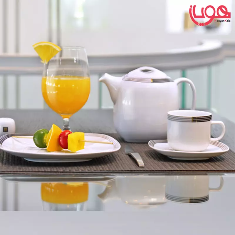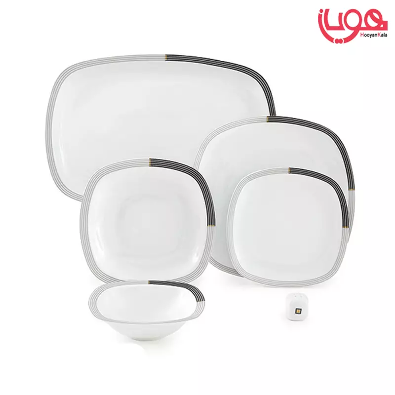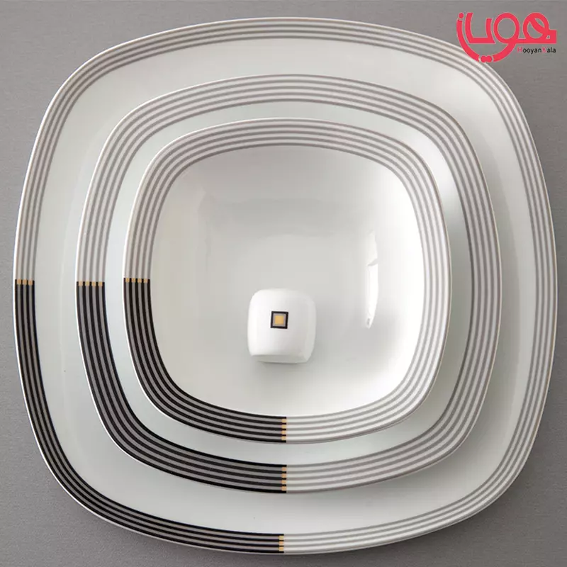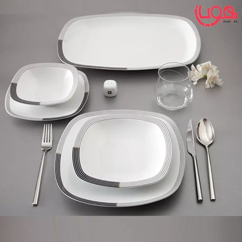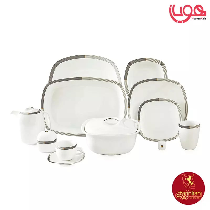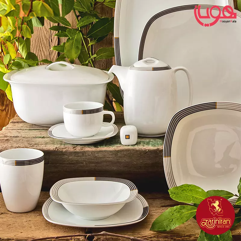 این سرویس با استفاده از مواد اولیه باکیفیت و فناوریهای پیشرفته تولید شده است که باعث دوام و ماندگاری بالای آن میشود. طراحی خطوط طوسی و مشکی در کنار پیکره چهارگوش، ظاهری مدرن و در عین حال کلاسیک به این سرویس بخشیده است.