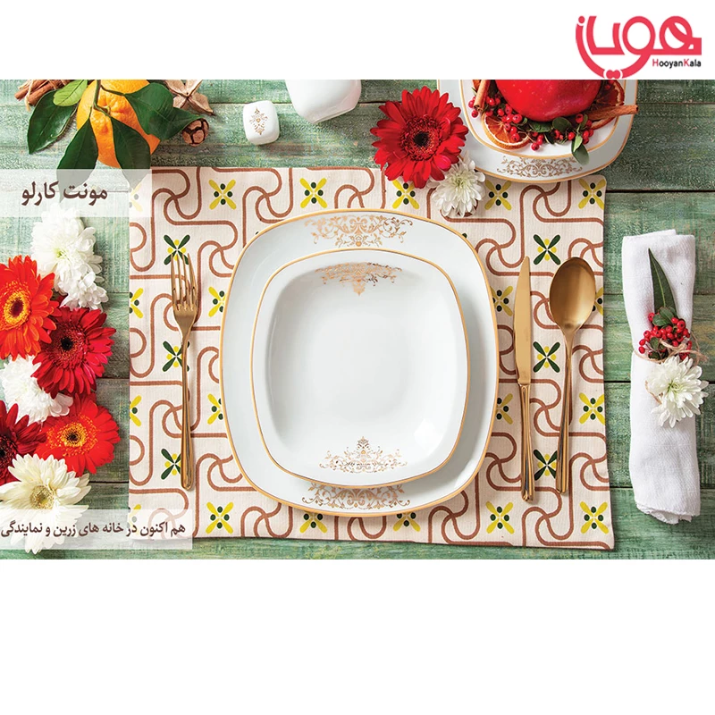 سرویس چینی زرین کواترو طرح مونت کارلو طلایی 12 نفره 98 پارچه