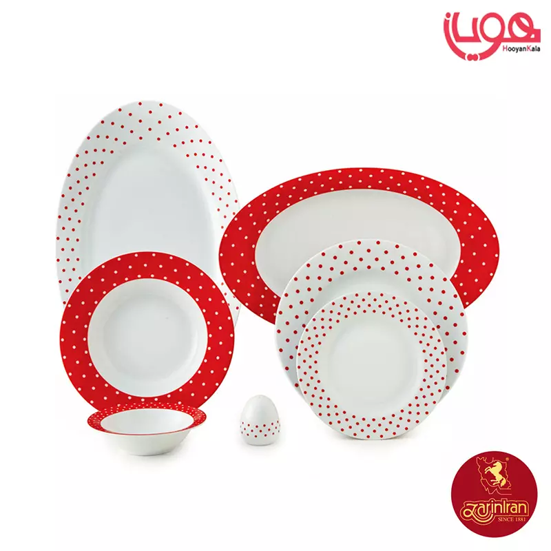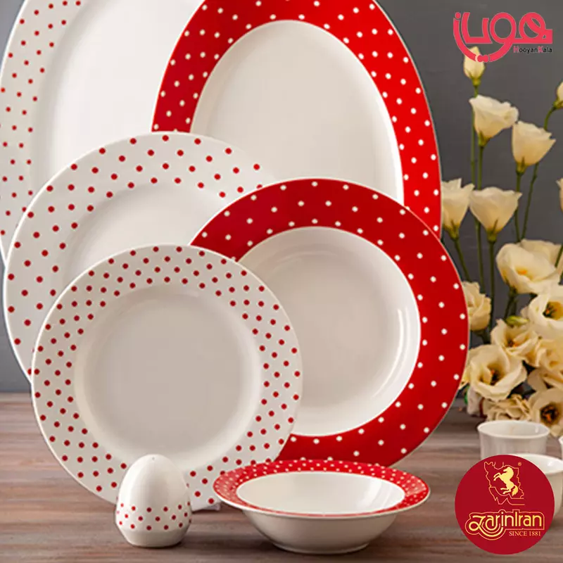 پیکره فوقالعاده ظریف ایتالیا اف همراه با لعاب شفاف سفید رنگ مشخصه اصلی سرویس چینی زرین است. طراحی کلاسیک و موزون سرویس چینی زرین ایتالیا اف اسپاتی قرمز، نظر هر بینندهای را به خود جلب میکند.دوام بالا و مقاومت قابل توجه در برابر هرگونه خراشیدگی و یا ترک خوردگی از دیگر ویژگیهای ممتاز سرویس چینی زرین ایتالیا اف اسپاتی قرمز محسوب میشود.کیفیت بالای بدنه ظروف چینی زرین سبب شده تا این محصول از عرضه و تقاضای بسیار بالایی در بازار لوازم خانگی برخوردار باشد.اقلام موجود در سرویس چینی زرین ایتالیا اف اسپاتی قرمز شامل شش عدد بشقاب تخت سایز ۲۵، شش عدد بشقاب گود سایز ۲۲، شش عدد بشقاب تخت سایز ۱۹، شش عدد سالادخوری کوچک، یک عدد نمک پاش، یک عدد فلفل پاش، یک عدد دیس بیضی سایز ۴۲و یک عدد دیس بیضی ساز ۳۸ میشود.با خرید سرویس چینی زرین ایتالیا اف اسپاتی قرمز میتوانید از مجموعه ظروف نفیس و ارزشمند با کیفیت بهرهمند شوید.