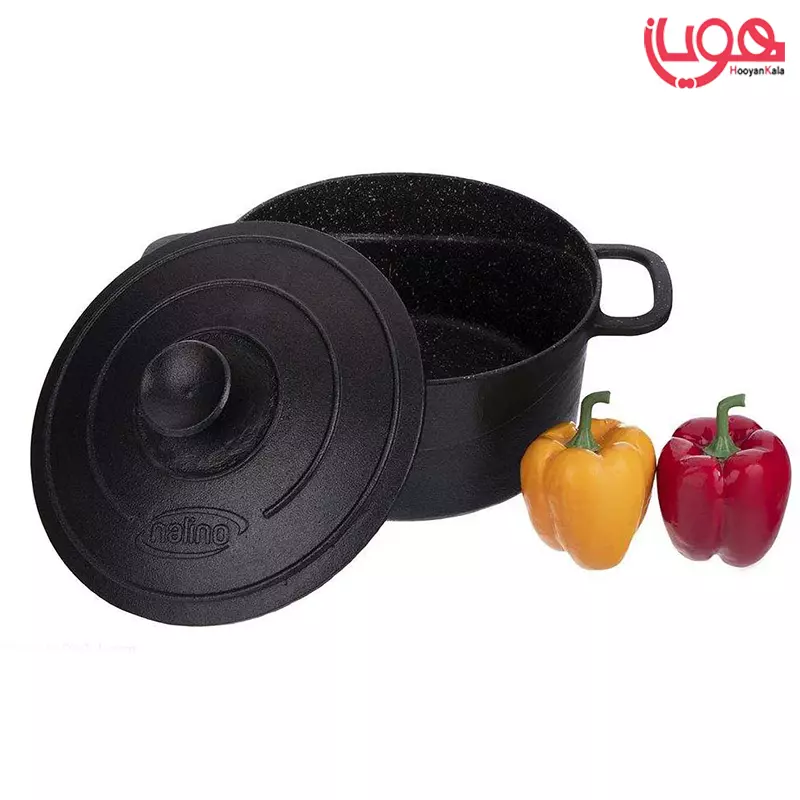 ظروف محبوب هر آشپزخانه است. مخصوصا بانوان ایرانی از این ظرف بسیار استفاده میکنند . قابلمه چدن اصل نالینو مناسب پخت انواع خورشت است و به هیچ وجه غذا به آن نمی چسبد. استفاده از قابلمه چدن یک نکته دارد و آن این است که هنگام تهیه پلو ، میزان آب را کمتر از همیشه در نظر بگیرید چون آب در ظروف چدنی خیلی دیرتر تبخیر می شود و همین خصوصیت باعث پخت بهتر خورشت می شود چون دیگر نیازی نیست که مدام آب به غذا اضافه کنید و تبخیر آن باعث از بین رفتن مواد مغزی و مزه غذا شود.ظروف چدن فوق العاده مستحکم و با دوام هستند و پخت غذا درآنها با روغن کمتری صورت می پذیرد. از آنجایی که بخش زیادی از این ظروف را آهن تشکیل داده، به همین علت نیز این ظروف سنگین تر از دیگر ظروف پخت و پز موجود در بازار هستند.