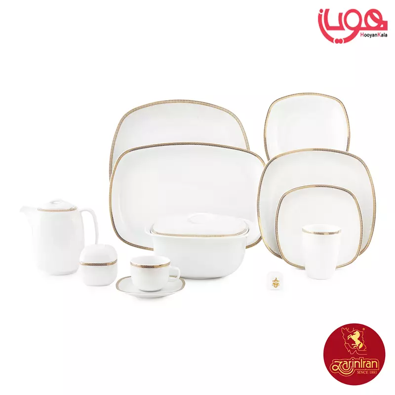 سرویس چینی زرین کواترو ریوا طلایی ۱۲ نفره ۹۸ پارچه | ترکیبی از شکوه طلایی و طراحی مدرن