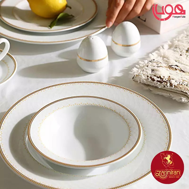 سرویس چینی زرین مدل نورا با بهرهگیری از نقوش مینیمال، ظریف و رنگهای ملایم طراحی شده است. ترکیب رنگهای کلاسیک و طلایی در کنار لعاب شفاف و درخشان این سرویس، جلوهای لوکس و چشمنواز به میز غذاخوری شما میبخشد. لعاب این ظروف در برابر شستشو و خط و خش بسیار مقاوم بوده و زیبایی خود را در طول زمان حفظ میکند.