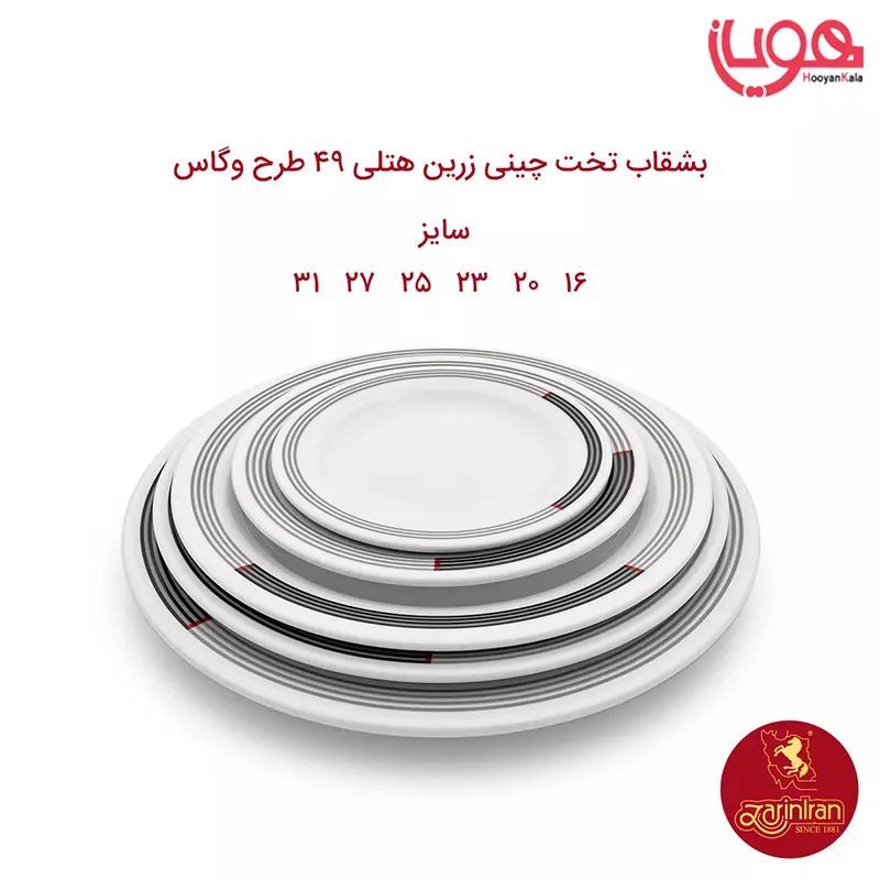خرید اینترنتی بشقاب تخت چینی زرین هتلی ۴۹ سایز ۲۰ طرح وگاس