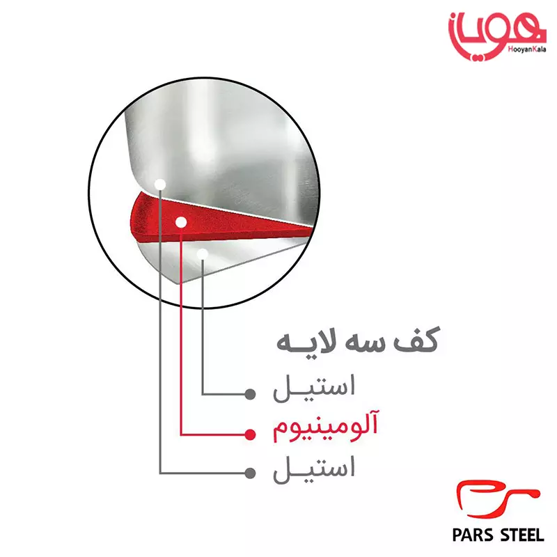- کف سه لایه: استیل + آلومینیوم + استیل برای انتقال حرارت یکنواخت