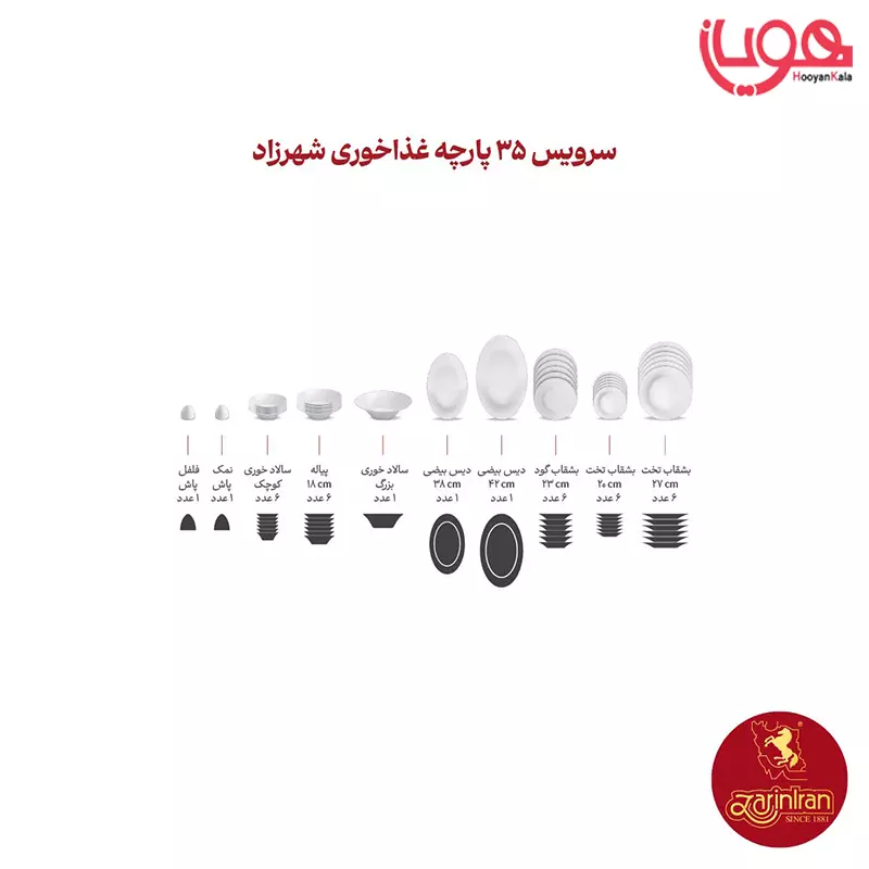 سرویس ۶ نفره ۳۵ پارچه چینی زرین – سری شهرزاد