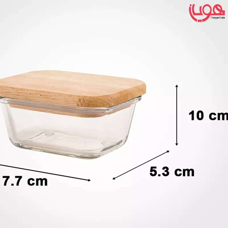 ظرف شیشه ای مستطیل 180 میلی لیتر درب چوبی لیمون 2187