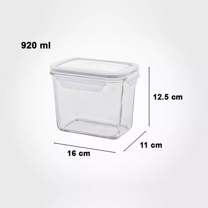 ظرف فریزری چهار قفل شیشه ای مستطیل دربدار 920 میلی لیتر 2153